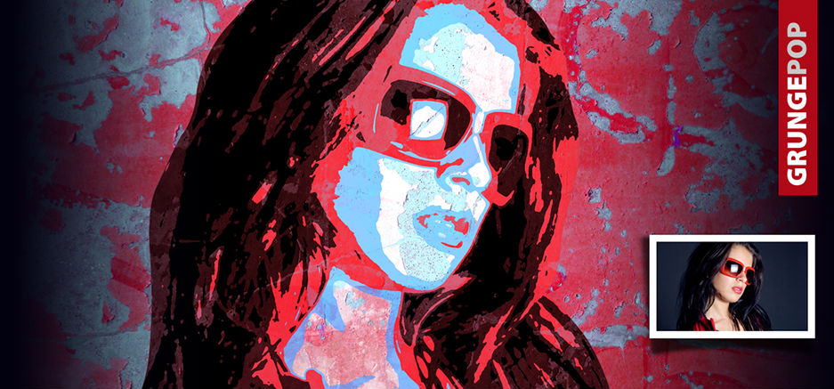 Wie beim ColorPop-Stil reduziert auf wenige Farben und Flächen zusätzlich mit einem Used-Look (Grunge) gestaltet.