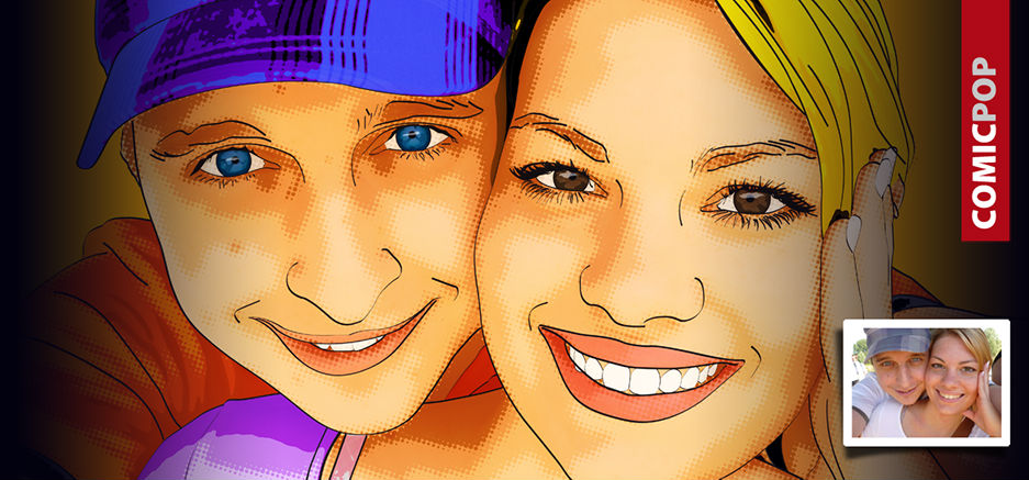 PopArt im Comicstil, auf Wunsch mit Rasterpunkten im Gesicht wie bei Roy Lichtenstein. Nicht nur für Kinder geeignet.